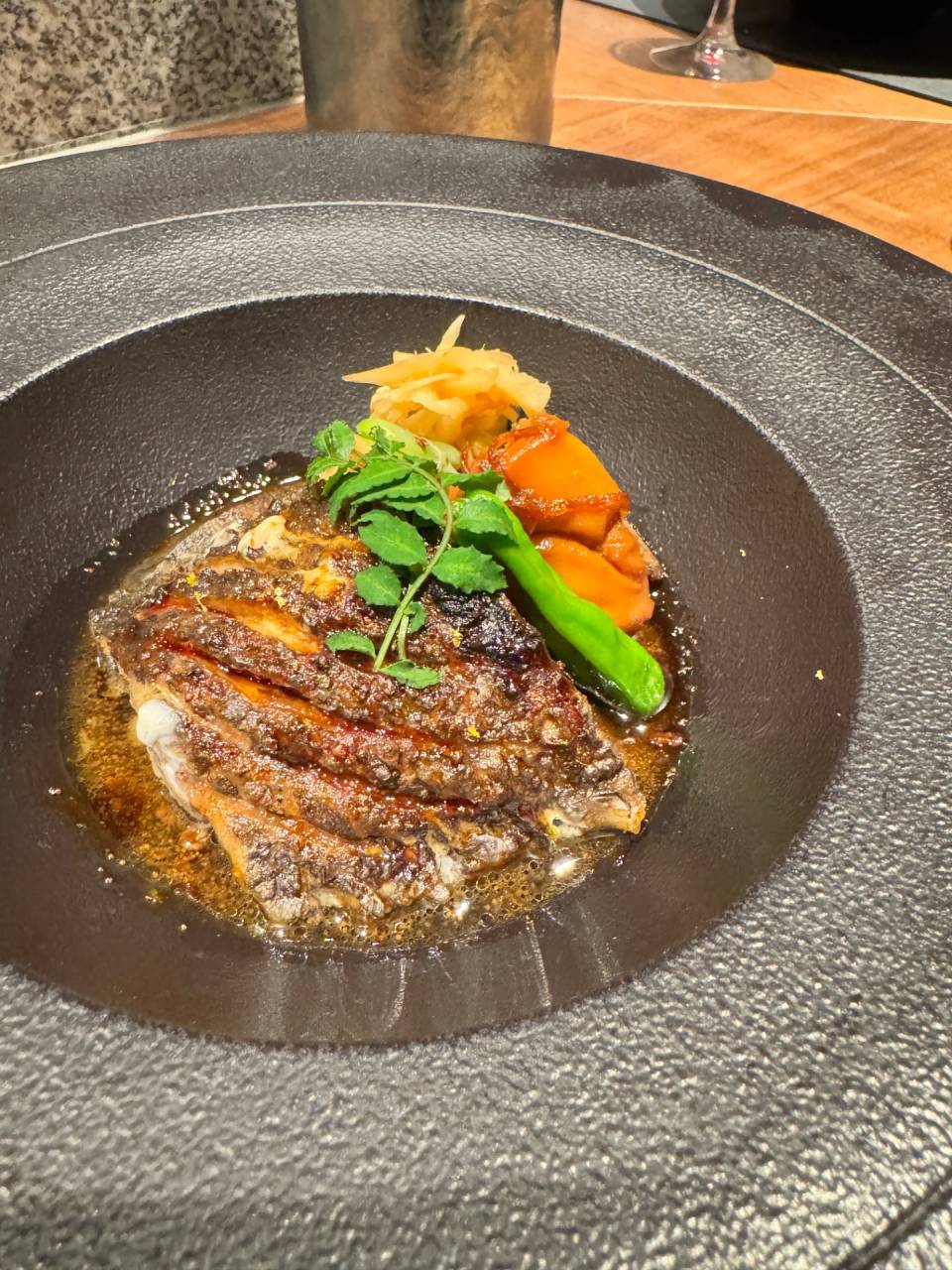 久しぶりの黒ムツの入荷特別コースにてのご提供でした。脂のりの良い黒ムツです。塩焼きは最上級のお召し上がり方です。皮目はパリッと炭火焼ですので、中はふわっと仕上がってます。これでずっと飲めます